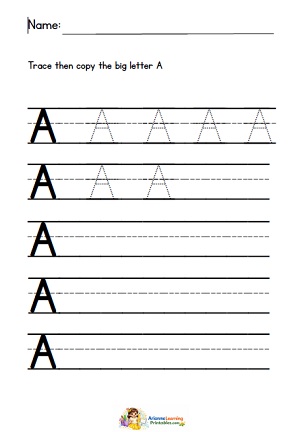 The worksheet includes dotted tracing lines for the letter A, providing guidance for children as they practice their handwriting. Each line encourages proper letter formation, helping to develop fine motor skills and hand-eye coordination. This is an essential skill for early writing success and sets the foundation for more advanced reading and writing activities.