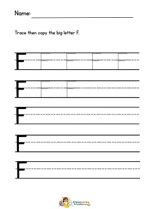 This worksheet gives children structured tracing practice to confidently form both the big letter F and the small letter f.