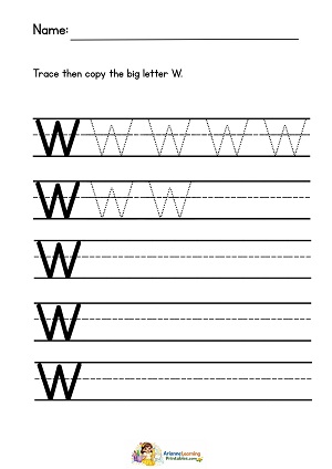 This worksheet gives children structured tracing practice to confidently form both the big letter W and the small letter w.